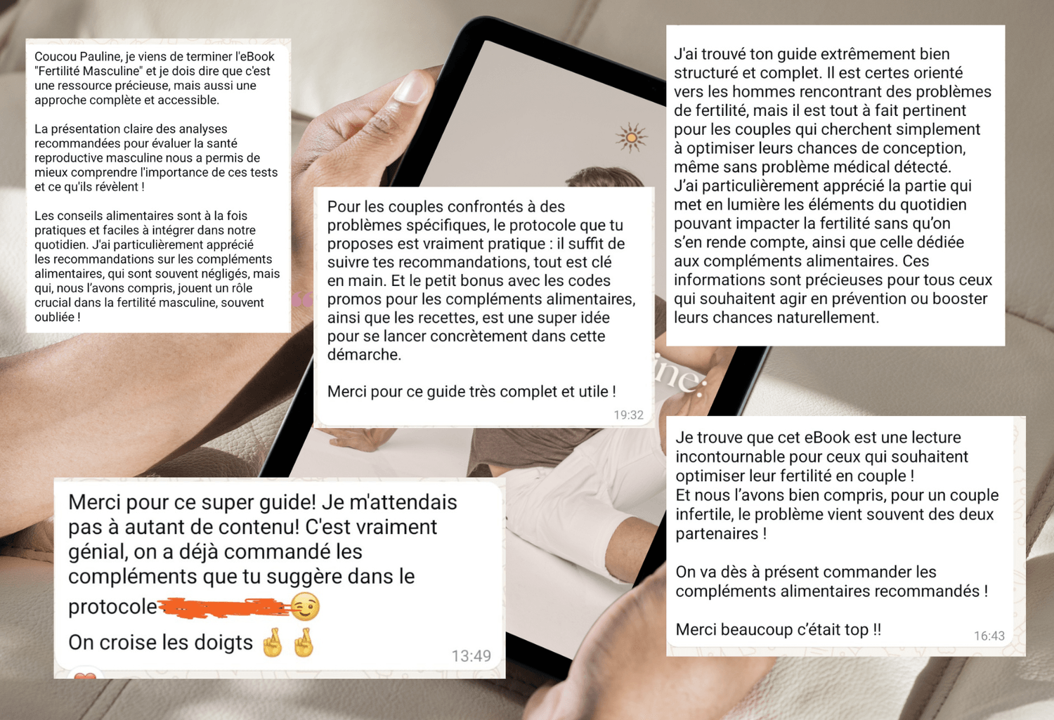 🔬 Des résultats visibles rapidement : En appliquant les recommandations de ce guide, certains hommes voient leur spermogramme s’améliorer en seulement 2 à 3 mois ! Plus de spermatozoïdes, plus mobiles, en meilleure santé = plus de chances de grossesse naturelle ou de réussite en PMA.